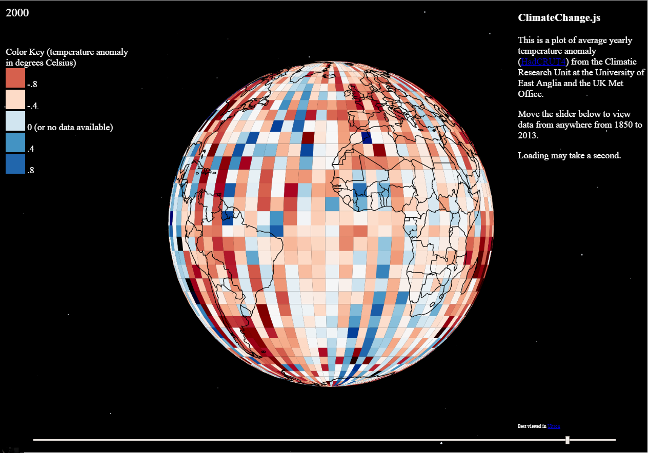 Displays temperature anomaly data from 1850 to 2013.